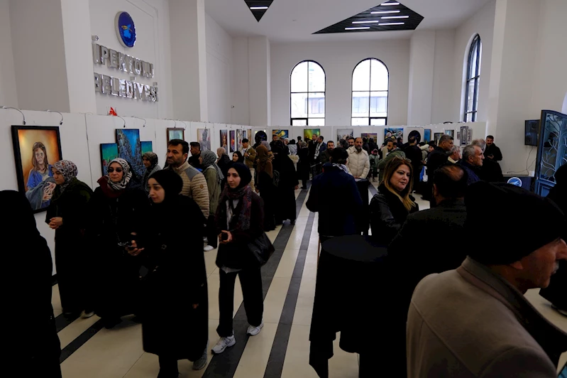 Akademisyenler, öğretmenler ve öğrencilerin katılımıyla gerçekleştirilen sergide, resimler aracılığıyla zulme karşı güçlü bir mesaj verildi.