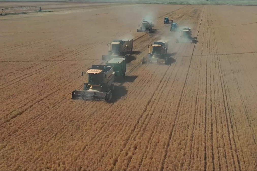TİGEM Şanlıurfa Ceylanpınar Tarım İşletmesi’nde 2025 yılının ilk hasadı başladı. Tarım ve Orman Bakanı İbrahim Yumaklı, üreticilere bereket diledi.