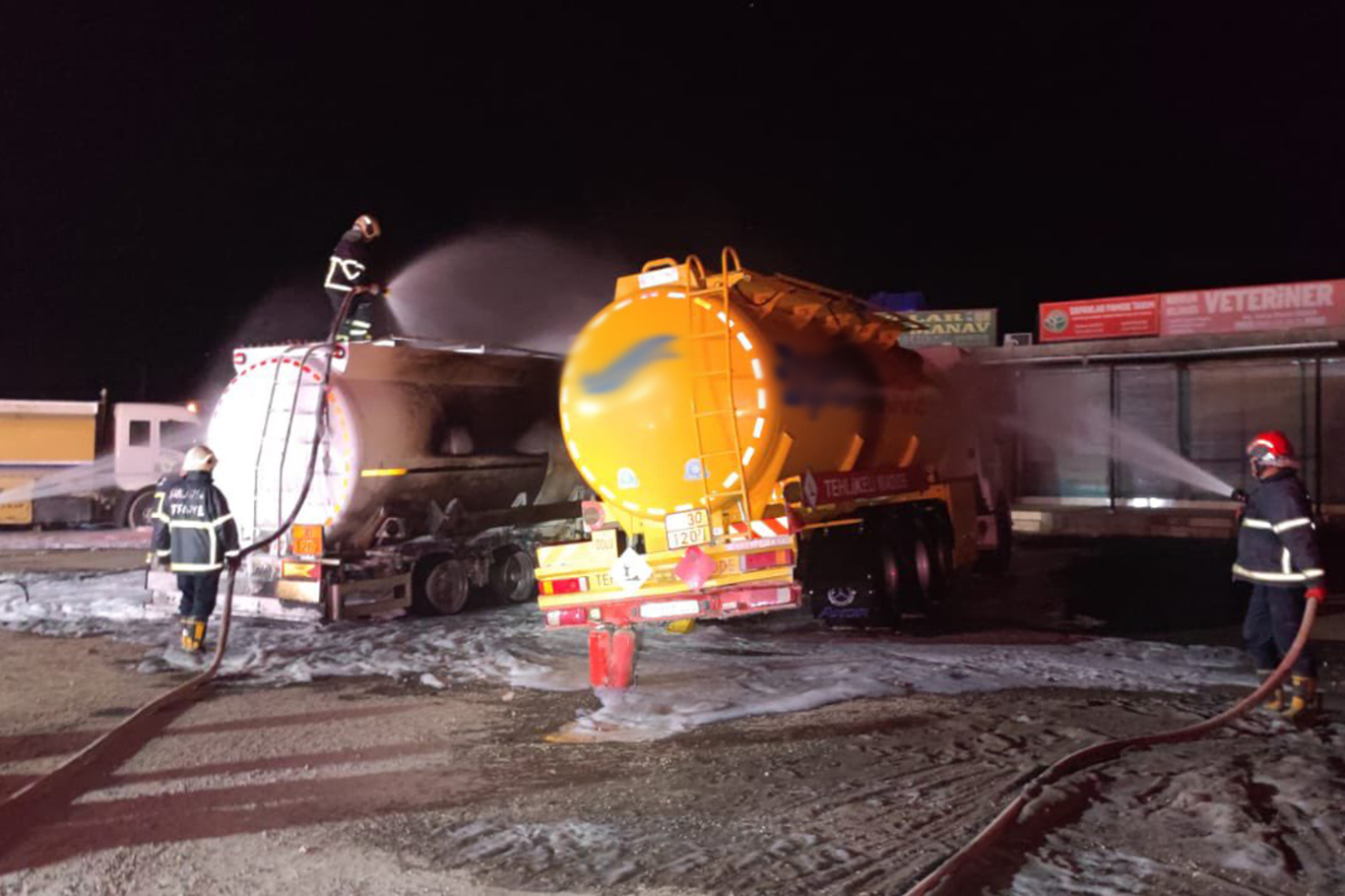 Olay, gece saatlerinde Şanlıurfa-Mardin Yolu üzerinde meydana geldi. Edinilen bilgiye göre, akaryakıt yüklü 2 tankerde henüz bilinmeyen bir nedenden yangın çıktı. Haber verilmesi üzerine olay yerine itfaiye ekipleri sevk edildi. Ekiplerin müdahalesi sonucu çıkan yangın söndürüldü. Yangının çıkış nedeni hakkında soruşturma başlatıldı. (İLHA)