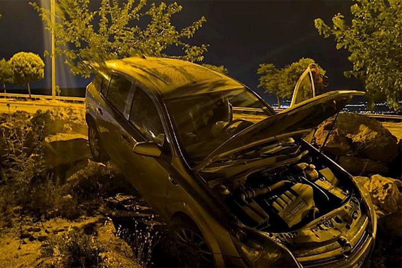 Direksiyon hakimiyetini kaybeden sürücü, yol dışına çıkarak aracıyla birlikte şarampole savruldu. Araç, kayalık bölgeye çarparak durabildi.