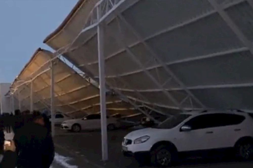 Şanlıurfa'nın Siverek ilçesi oto galericiler sitesindeki tentelerin çökmesi sonucu zamanla kalan yaklaşık 50 araçta hasar meydana geldi.