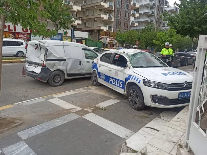 Çarpışmanın etkisiyle savrulan polis aracı, park halindeki hafif ticari araca çarptı.
