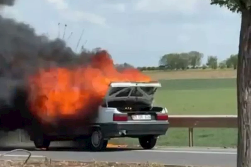 Edinilen bilgilere göre, seyir halindeki bir otomobil, henüz belirlenemeyen bir sebeple yanmaya başladı.