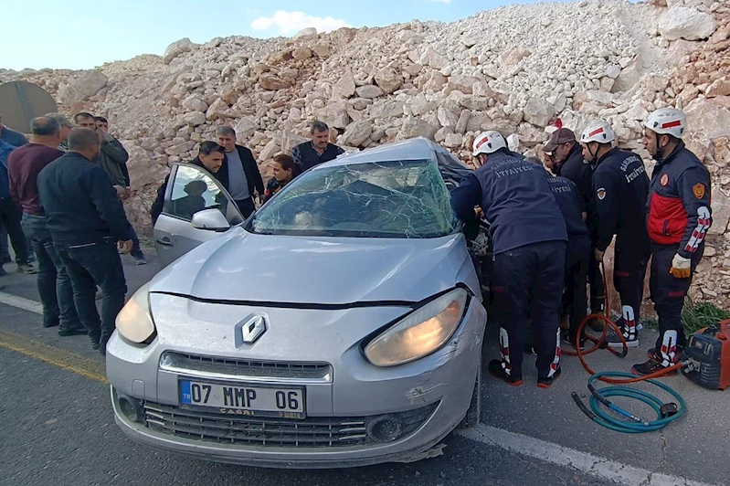 Kazada, otomobil sürücüsü M.H.A. araçta sıkışarak yaralandı.