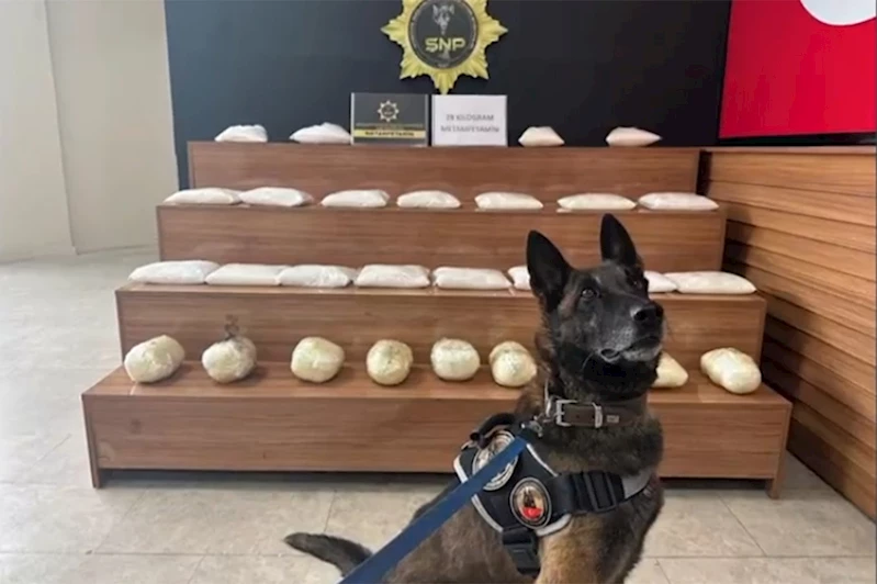 Araçta yapılan aramada 28 kilogram metamfetamin ele geçirildi.