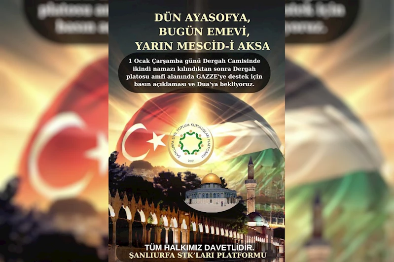 Şanlıurfa STK Platformu 1 Ocak’ta "Dün Ayasofya, Bugün Emevi, Yarın Mescid-i Aksa" adlı program düzenleyecek.
