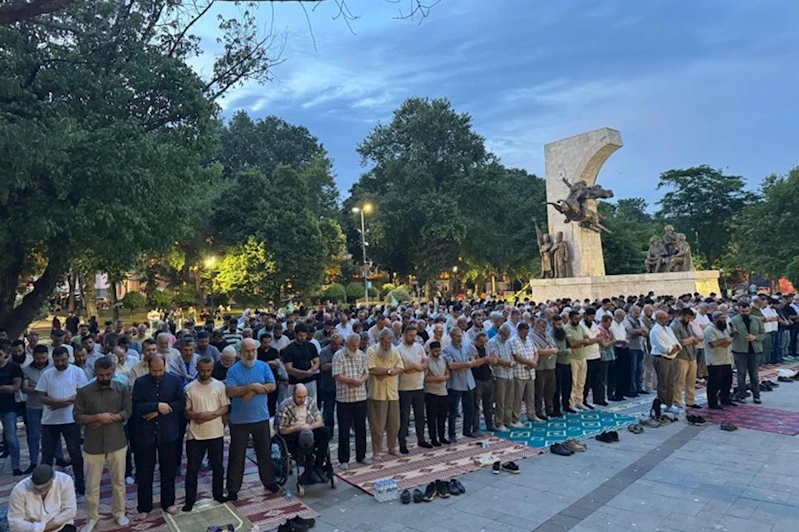 İslami Dayanışma Platformu'nun çağrısıyla Saraçhane Parkı'nda bir araya gelen yüzlerce kişi, akşam namazı sonrası Gazze için kunut duası okundu.