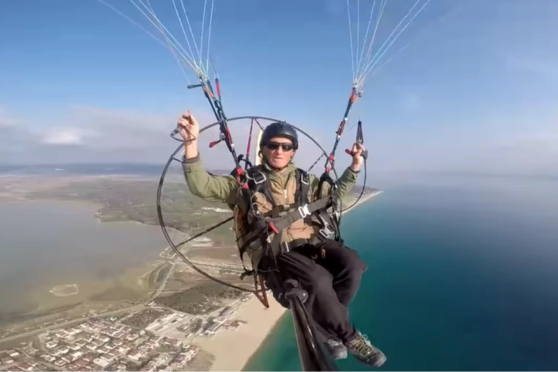 Erdoğan DEMİR / EDİRNE (İGFA) - Keşanlı paramotor pilotu Yılmaz Özkaya, Saros Körfezi üzerinde anlamlı bir uçuş gerçekleştirdi.