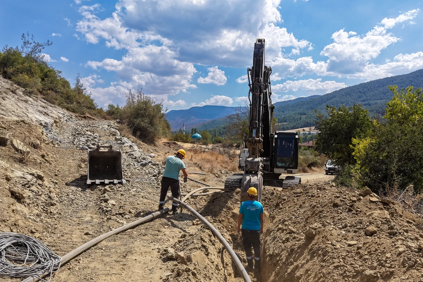 Mevcut kaynaklar üzerindeki stresi de azaltacak yeni kaynağın abonelere kesintisiz şekilde ulaşması için 2 bin metrelik yeni içme suyu hattı inşa ediliyor. Kısa sürede yüzde ellilik kısmı tamamlanan hat, güçlü yapısı ile su kayıplarına da geçit vermeyecek.