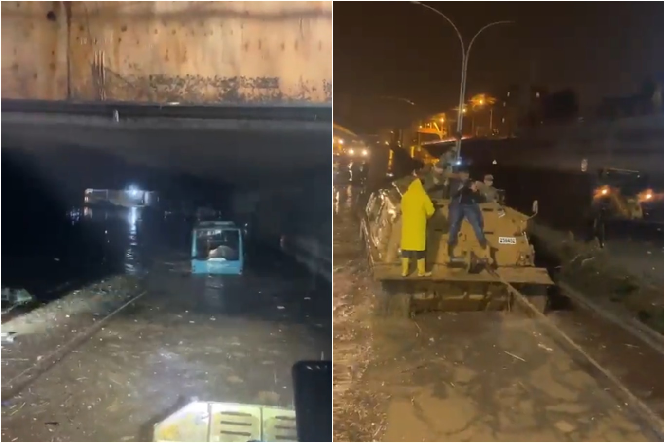 Şanlıurfa'da meydana gelen sel felaketinde, Abide Kavşağı'nda su altında mahsur kalan 2 belediye otobüsü, 20'nci Zırhlı Tugay Komutanlığımıza ait Tank Kurtarıcı ile çekilerek çıkarılarak. #MSB pic.twitter.com/sAGqGqis2S