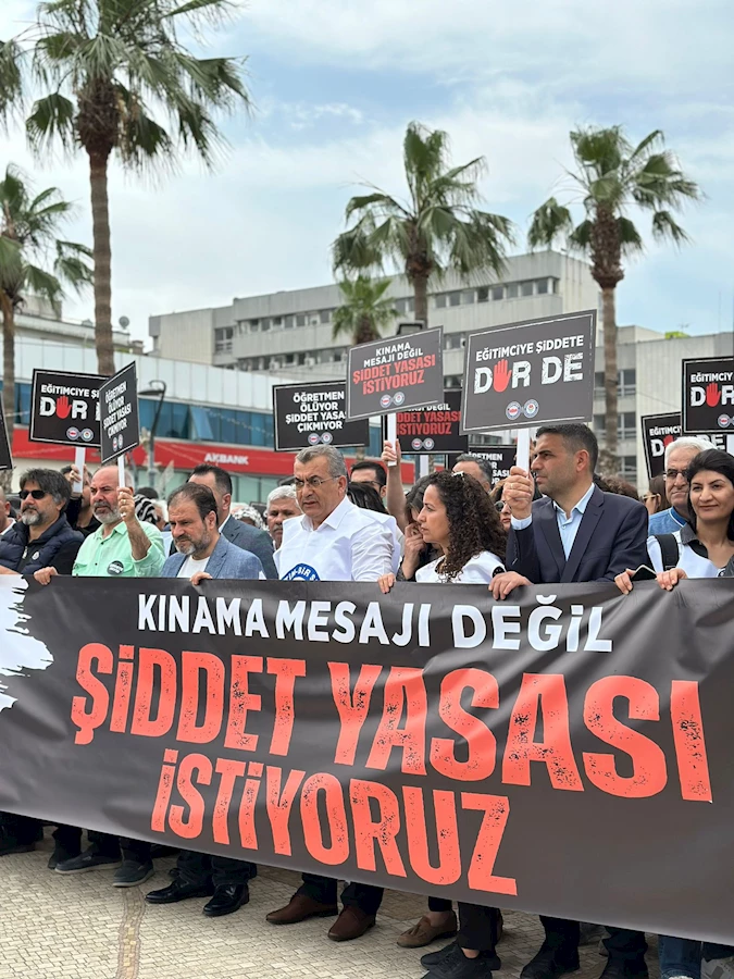 Dün Ankara’da TBMM önünde yaptığımız çağrıyı bugün burada bizlerde yapıyoruz: Artık ölümle sonuçlanmaya başlayan saldırıların son bulması için gereken adımların ivedilikle atılmalıdır. Eğitimcilere yönelik şiddeti önleme yasası artık çıkarılmalıdır .