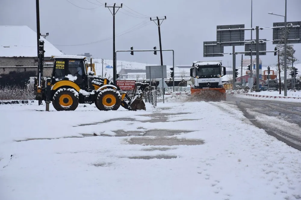 Karla mücadele ekipleri, greyderler, traktör kepçeler, tuzlama araçları, tuz yükleyiciler ve süpürge araçları gibi donanımlarla sabahın erken saatlerinde çalışmalara başladı.
