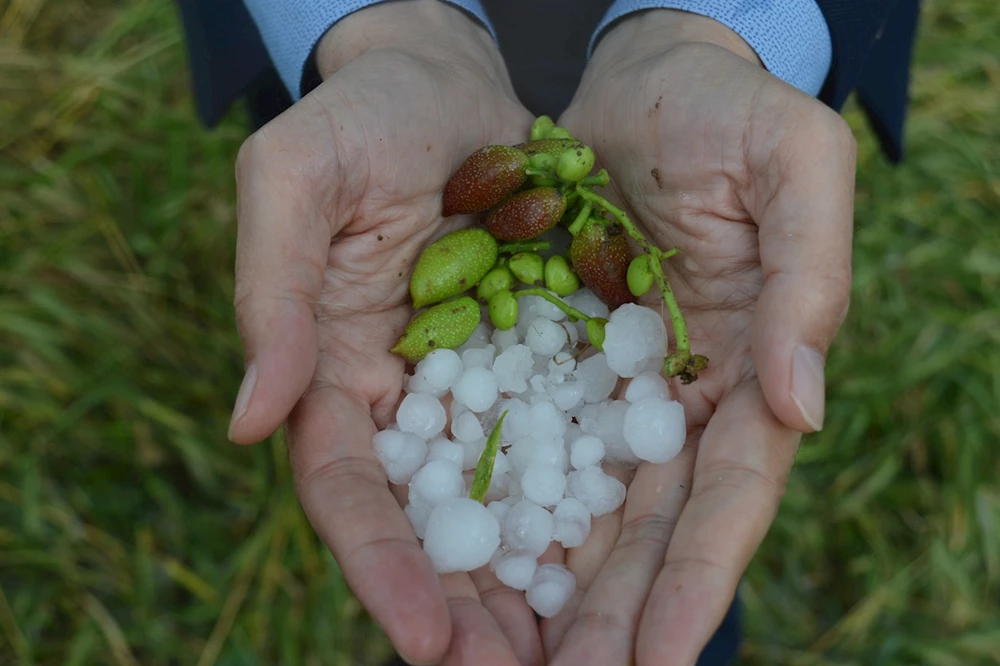 Siirt'in Fersaf ve Halenze köylerinde ikindi saatlerinde etkili olan dolu gösterisi, Fıstık ve menengiç bahçelerine büyük zarar verdi.
