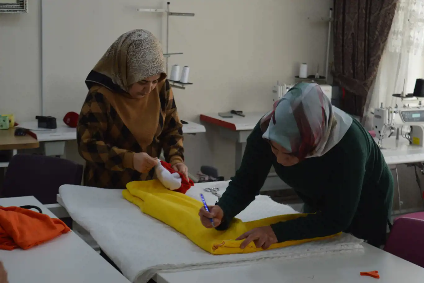 Siirt'te Aile Destek Merkezi kursiyerleri, öğretmenleri ve gönüllü anneler, ürettikleri uyku tulumları ve çocukları Kahramanmaraş merkez depremlerinden etkilere ulaştırıyor.
