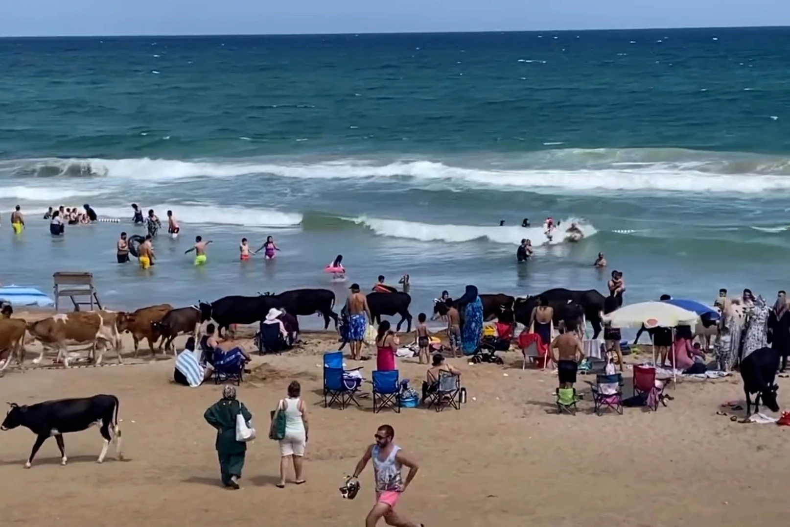 İstanbul Şile’de bir sahilde büyükbaş ve küçükbaş hayvanların yer aldığı bir sürü denize giren vatandaşların arasında başıboş bir şekilde dolaşırken bir vatandaş tarafından cep telefonuyla görüntülendi.