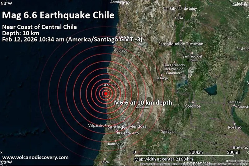 Şili'nin orta kıyılarına yakın bir bölgede 6,6 büyüklüğünde bir deprem meydana geldi.