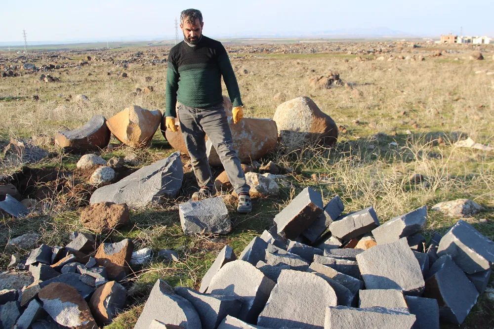 200-300 kilogramlık taşları kırarak çocuklarını okutan Tuzan," İdil ilçesine bağlı Tepeköy'de ikamet diyorum. 6 senedir taşları kırarak geçimimi sağlıyorum. 50 yaşındayım bu işi yapıyorum, bırakamıyorum. 10 nüfusum var 9'u öğrenci. Hamdolsun geçimimi bundan sağlıyorum. Bu taşları kırarak ekmeğimizi çıkarıyoruz. Bu taşları kırarak evlerin duvarlarda, bahçe duvarlarında ve parke taşları olarak kullanıyoruz. " dedi.