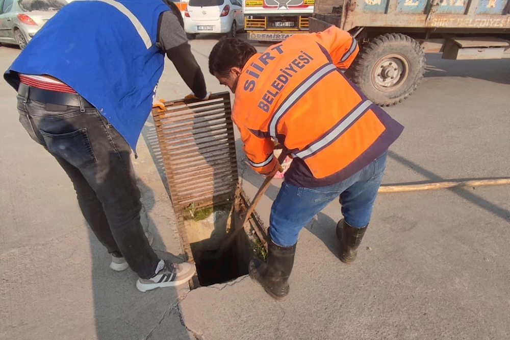 Siirt Belediyesi Su ve Kanalizasyon (SİSKİ) Müdürlüğü son günlerdeki yağmurlarla kent merkezindeki mazgal ve rögarlara sıkışan atıkları temizliyor.