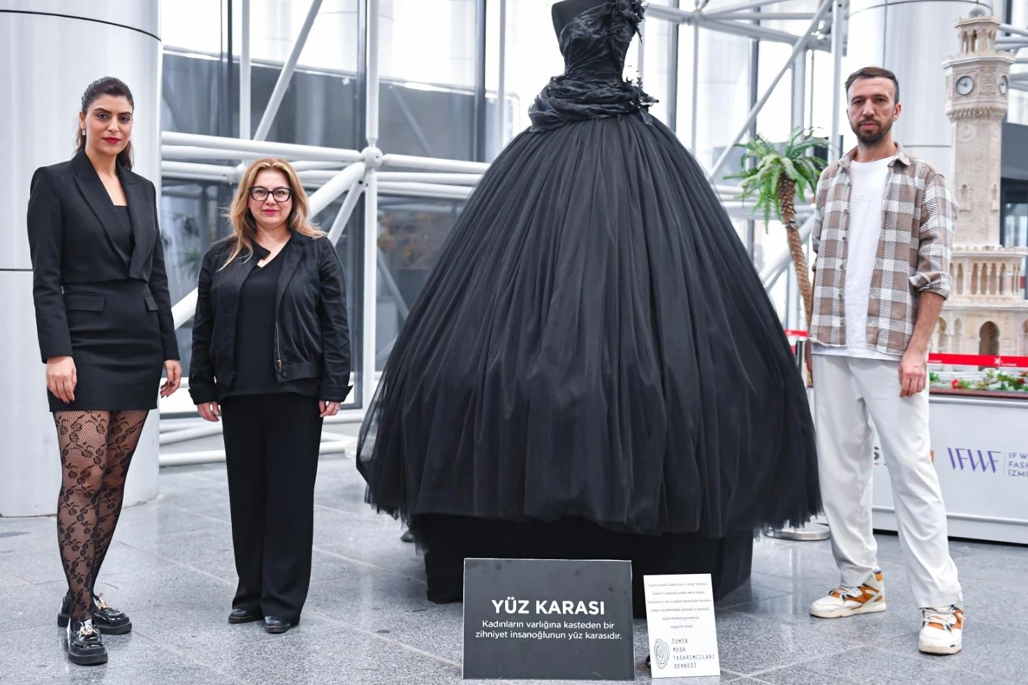 İzmir Moda Tasarımcıları Derneği, IF Wedding Fashion İzmir Fuarı kapsamında farklı bir projeye imza attı. Dernek üyeleri, kadına yönelik şiddete dikkat çekmek amacıyla tasarladıkları siyah gelinlik ile toplumsal farkındalık yaratmayı amaçladı. “Kadınların varlığına kasteden bir zihniyet insanlığın yüz karasıdır” mesajıyla sergilenen tasarım, fuar ziyaretçilerinden de ilgi gördü.