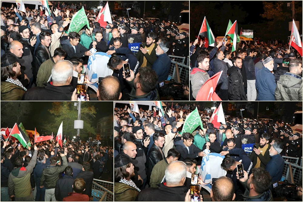 Siyonist çetenin Ankara’daki terör yuvası önünde kitlesel eylemler düzendi. Halk, elçilik binası kapatılsın diyerek 'terör yuvasına' tepki gösterdi.