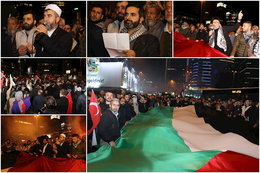 Grup adına basın açıklamasını okuyan HÜDA PAR İstanbul İl Başkan Yardımcısı Şerafettin Güler, 'Ey Müslümanlar! Gazze'de yıkım, ölüm, vahşet, katliam var. Gazze'nin üstüne bombalar yağıyor. Gazze'de elektrik yok, su yok, yiyecek yok, yaşama hakkı yok. Gazze'de sadece vahşi bir soykırım var. Masum çocuklar ölüyor, kadınlar ölüyor, ihtiyarlar ölüyor ve bunların toplamı olan siviller ölüyor. Hastanelerde yer yok, yoğun bakımlar işlevsiz, jeneratörlerin yakıtı bitti. Bugün Gazze'de insanlık tarihinde görülmemiş bir vahşet yaşanmaktadır. Emperyalist güçlerin desteğini arkasına alan siyonist işgal rejimi, bütün dünyanın gözü önünde Gazze'de soykırım uyguluyor. Ama İslam âlemi sessiz, Dünya sessiz, sözde insan hakları savunucuları başını kuma gömmüş durumdadır. ' dedi.