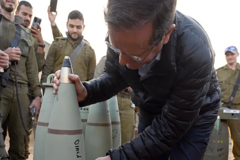 Gazze'ye atılacak obüs mermilerinden birinin üzerine de "size güveniyoruz" yazan siyonist Herzog'un bu tavrı, büyük tepki topladı.