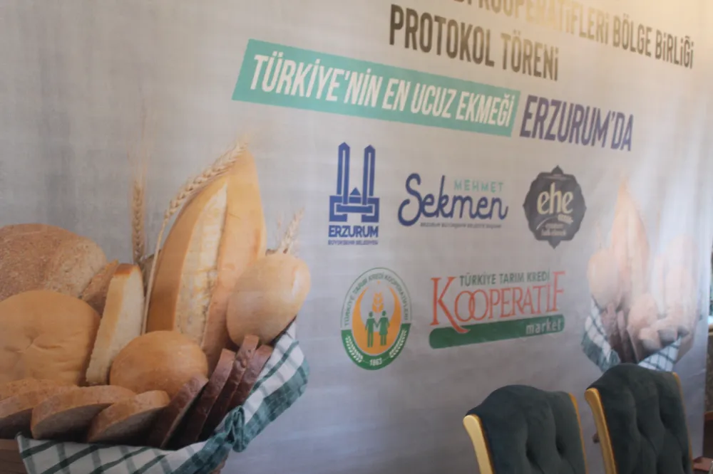 Erzurum Büyükşehir Belediyesi bünyesinde çıkarılarak halka değişik noktalardaki büfeler aracılığıyla satışı yapılan Halk Ekmek, atılan imzalar sonrasında Tarım Kredi Kooperatif Marketlerinde, 2024 yılı süresince zam yapılmadan halka 4.00- tl gibi bir rakamla satılacak.
