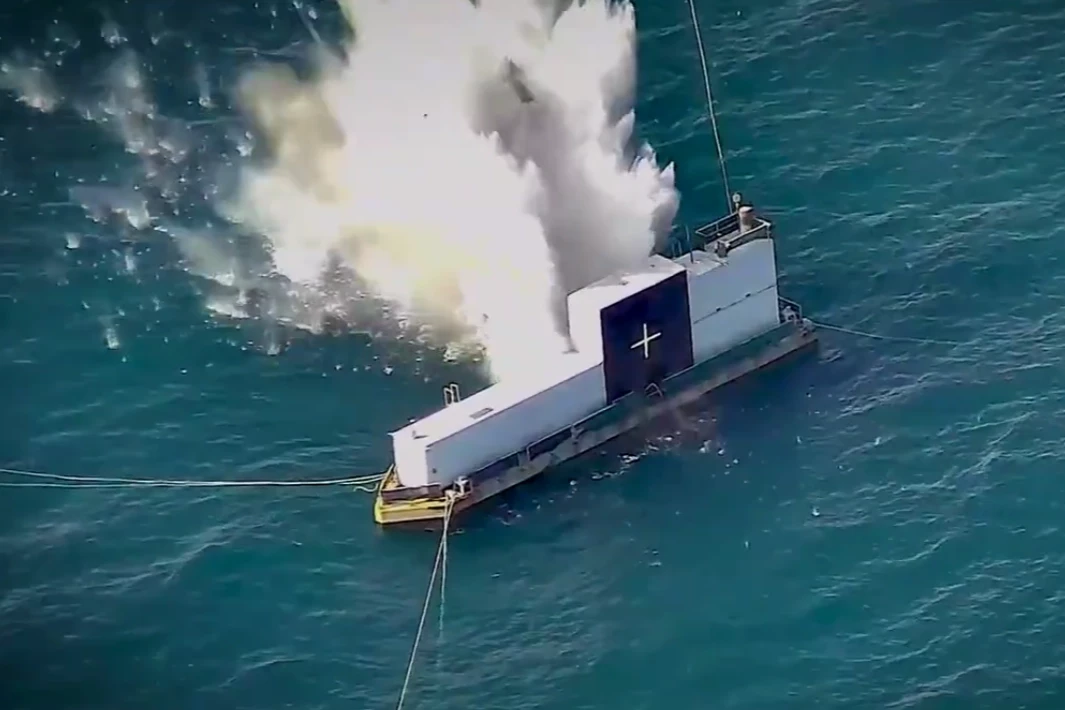 SOM-J, atış sırasında hedef deniz platformunu başarıyla vurdu.