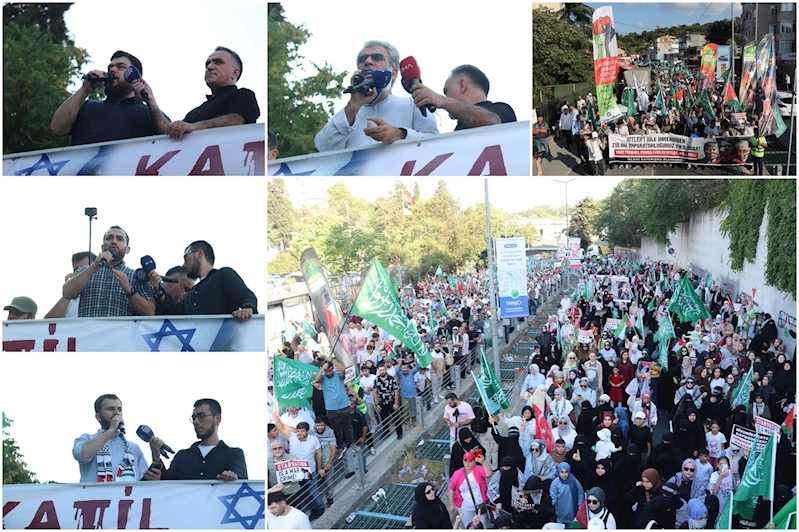 HAMAS tarafından yapılan kitlesel gösteri ve yürüyüş çağrısına karşılık vermek amacıyla bir araya gelen binlerce kişi, siyonist vahşete destek veren Amerika'yı telin etmek için ABD'nin İstanbul konsolosluğuna yürüdü.