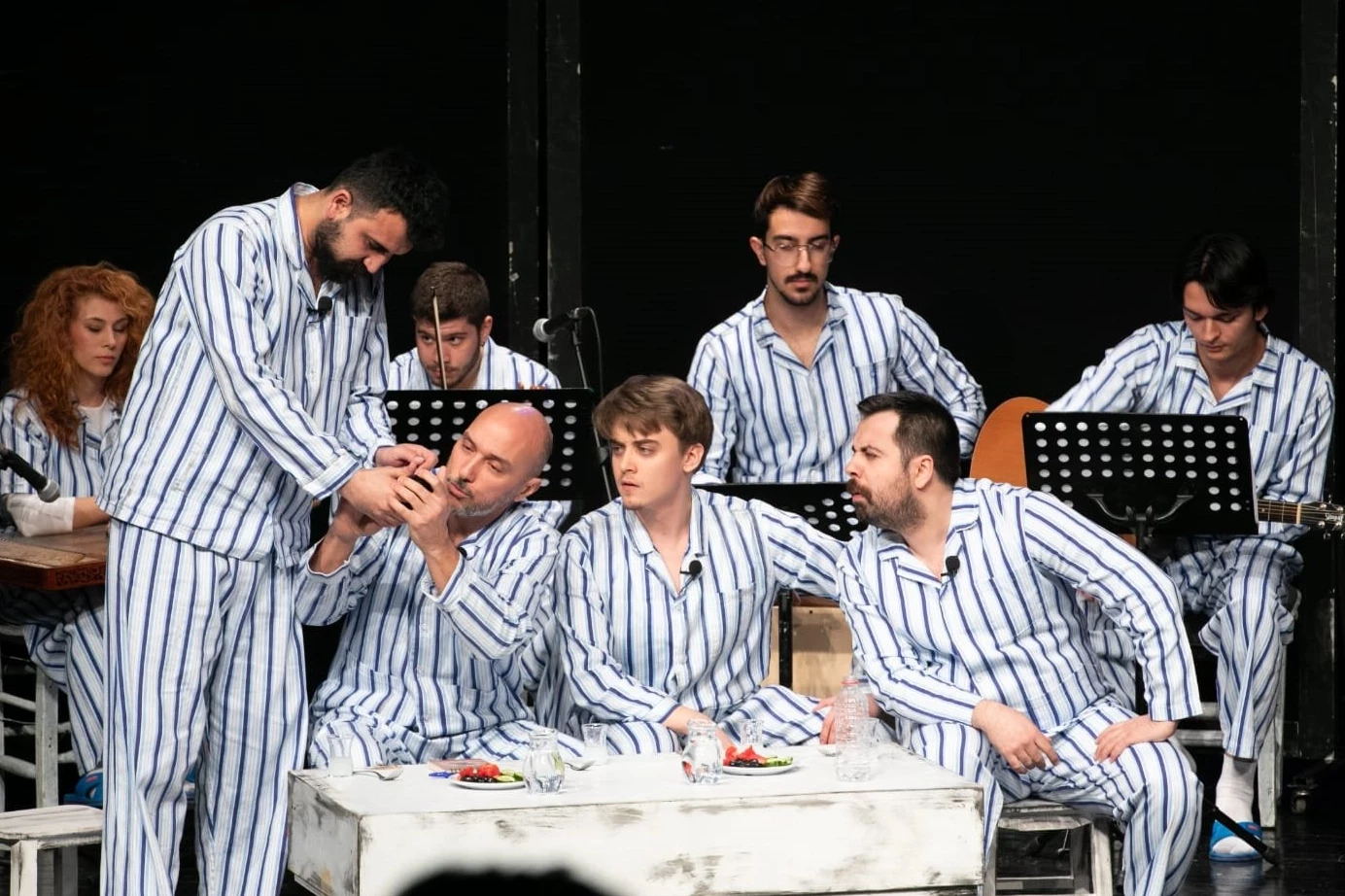 İZMİR (İGFA) - İzmir Büyükşehir Belediyesi Şehir Tiyatroları (İzBBŞT) ile Bursa Büyükşehir Belediyesi Şehir Tiyatrosu arasında başlatılan “Oyun Değişim Programı” kapsamında, Bursa Şehir Tiyatrosu’nun ilgiyle izlenen “Süleyman ve Öbürsüler” isimli oyunu İzmirli tiyatroseverlerle buluştu. Max Frisch’in "Biedermann ve Kundakçılar" oyunundan esinlenerek Yavuz Pekman tarafından Türkiye coğrafyasına uyarlanan oyun, 10-11-12 ve 13 Nisan tarihlerinde, İzBBŞT İsmet İnönü Sahnesi’nde beş farklı gösterim gerçekleştirdi. Oyuncu performansları ve sahne tasarımıyla “Süleyman ve Öbürsüler” İzmirliler’den tam not aldı.