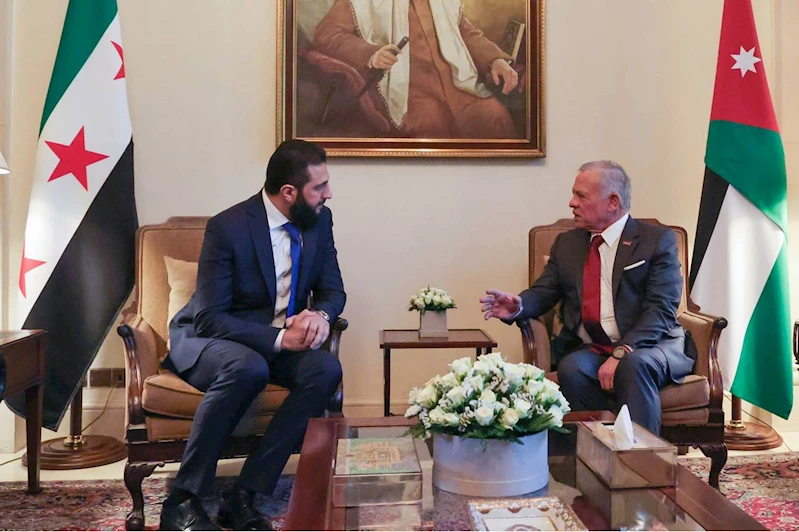 Ürdün resmi haber ajansı Petra'nın bildirdiğine göre, Kral Abdullah, beraberinde Dışişleri Bakanı Esad eş-Şeybani ve bazı yetkililerle birlikte gelen Şara’yı, başkent Amman’daki Marka Havalimanı'nda karşıladı.