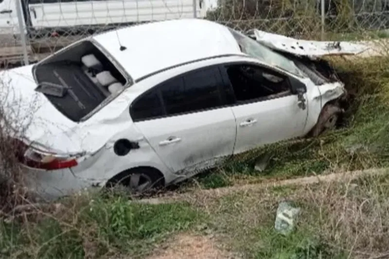Direksiyon hâkimiyetini yitiren kadın sürücü, aracın yoldan çıkması sonucu kaza yaptı.