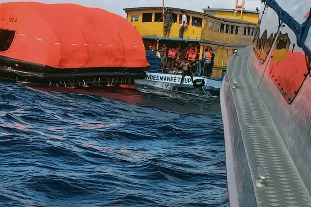 Su alan feribottaki yolcu ve mürettebat, olay yerine ulaşan ekipler tarafından kurtarma botlarına ve çevredeki balıkçı teknelerine tahliye edildi, feribot kısa süre içinde battı.