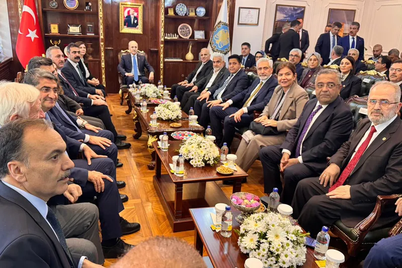 Milli Dayanışma, Kardeşlik ve Demokrasi Komisyonu'nun saha çalışmaları kapsamında Diyarbakır'a giden TBMM Başkanı Numan Kurtulmuş, aralarında HÜDA PAR Genel Başkanı ve Komisyon Üyesi Zekeriya Yapıcıoğlu'nun da bulunduğu heyetle birlikte Diyarbakır Büyükşehir Belediyesini ziyaret etti.