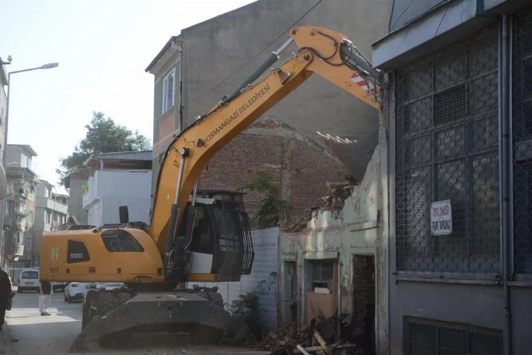 Bursa'da Osmangazi Belediyesi, halkın can ve mal güvenliğini tehdit etmesinin yanı sıra kimi zaman madde bağımlılarının mekânına dönüşen ve görsel kirlilik oluşturan metruk yapılarla mücadelesini aralıksız sürdürüyor.