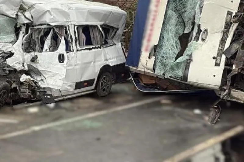 Edinilen bilgilere göre, fabrika çalışanlarını taşıyan servis minibüsü ile seyir halindeki bir kamyon henüz bilinmeyen bir nedenle çarpıştı.