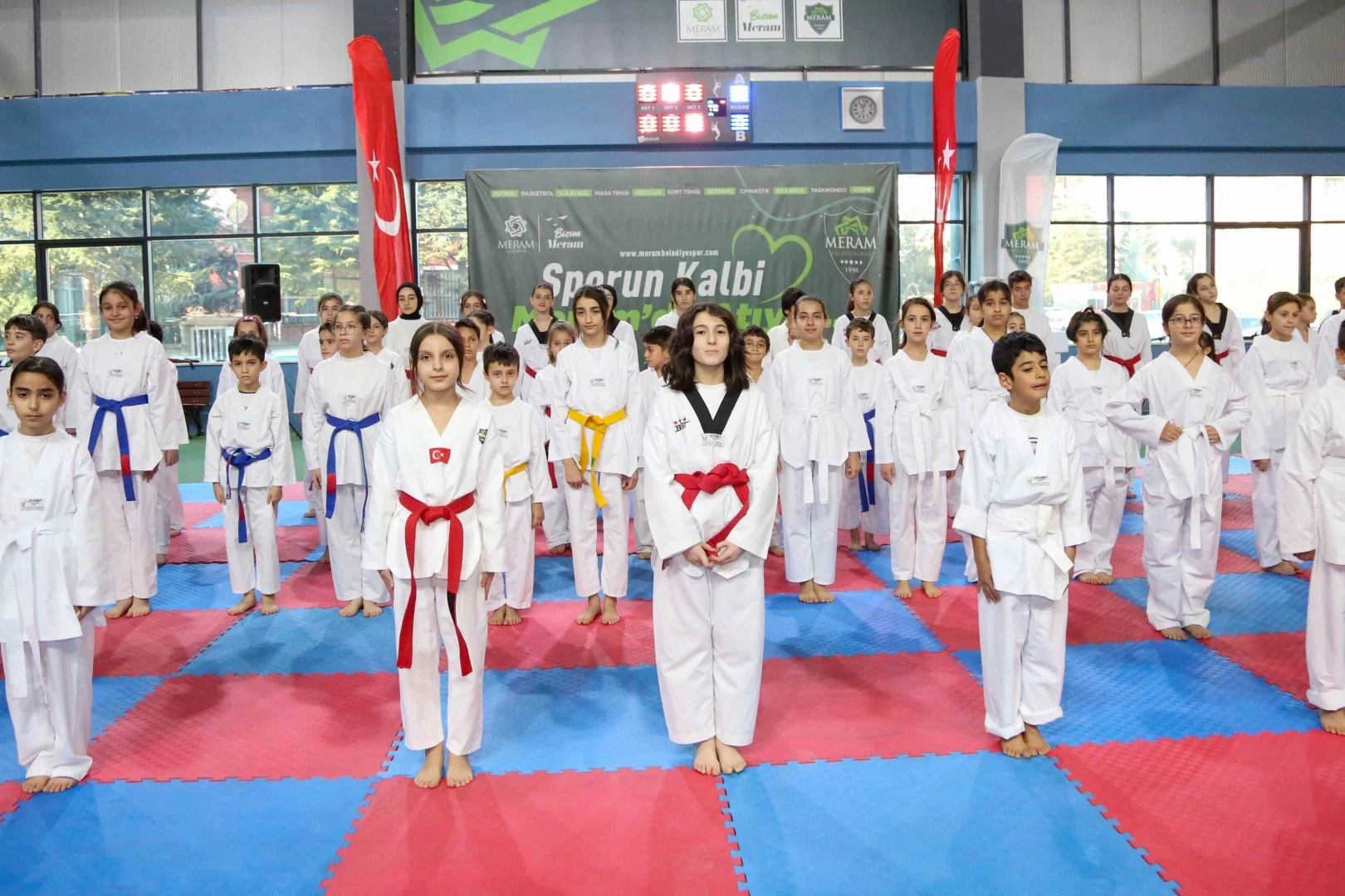KONYA (İGFA) - Meram Belediyesporun genç taekwondocuları bir kez daha kuşak terfi heyecanı yaşadı. Meram Belediye Başkan Yardımcısı Ahmet Şenyiğit, kulüp yöneticileri, taekwondocuların aileleri ve antrenörleri de yeni kuşak heyecanı yaşayan genç sporcuları yalnız bırakmadılar. Meram Belediyesi Aşkan Muhammet Yürükuslu Spor Tesisleri’nde gerçekleştirilen tören, genç sporcuların şovuyla başladı. Antrönerleriyle birlikte hünerlerini sergileyen sporcuların gösterisi salondan büyük alkış aldı.