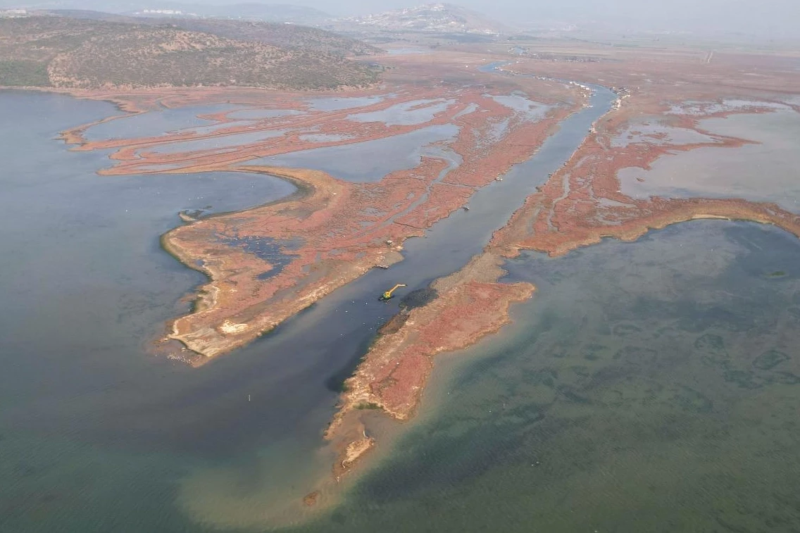 Körfez’in temizlenmesi için tarihinin en büyük yatırımlarından birini hayata geçiren İzmir Büyükşehir Belediyesi, Gediz Nehri’nin denizle buluştuğu noktalarda da temizlik çalışmalarına başladı. İZSU Genel Müdürlüğü ekipleri Foça’da amfibik makineyle nehirden taşınan malzemeleri temizliyor.