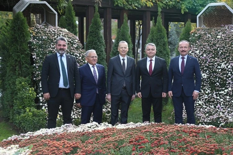 Ticaret Bakan Yardımcısı Özgür Volkan Ağar, Kayseri Büyükşehir Belediye Başkanı Dr. Memduh Büyükkılıç’ı makamında ziyaret etti. Başkan Büyükkılıç ziyarette, “Kayseri’mizde sizleri görmek, güzel şehrimizin güzel insanlarını o konum ve durumlarda görmek bizleri hem yüreklendiriyor hem keyiflendiriyor” dedi.