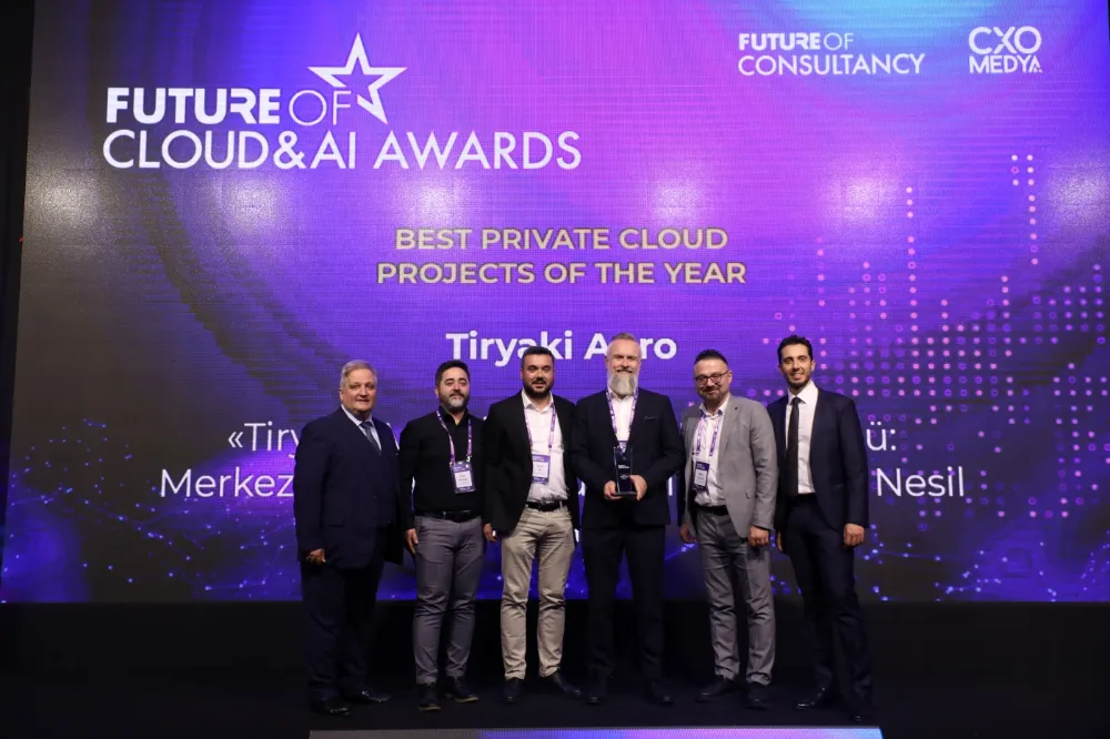 Yapay zeka ve bulut bilişim alanındaki yeniliklerin ödüllendirildiği Future of AI & Cloud Summit'te, özel bulut çözümleriyle öne çıkan projeler 'Best Private Cloud' kategorisinde değerlendirildi. Bu prestijli kategoride büyük ödülün sahibi olan Tiryaki Agro, “Özel Bulut Dönüşümü: Merkezi Yönetim ve Güvenlik için Yeni Nesil Altyapı” projesiyle başarısını taçlandırdı. Tiryaki Agro'nun gelişmiş bir veri merkezine sahip olmasını sağlayan projede çözüm ortağı ise vMind oldu.