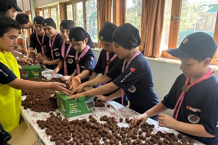 İzciler, Çevre Kuruluşları Dayanışma Derneği’nin (ÇEKUD) izcilik kampına özel geliştirdiği ve koordinasyonunu yürüttüğü “Tohumdan Fidana: 81 İle 81 Bin Tohum Topu” etkinliği kapsamında, deprem sonrası ülkece gösterilen dayanışmaya teşekkür etmek amacıyla tohum topları üretti.