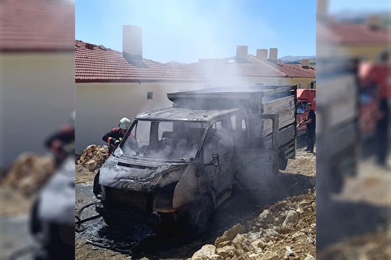 Edinilen bilgiye göre, şantiyeye malzeme taşıyan bir transit, aniden alev aldı.
