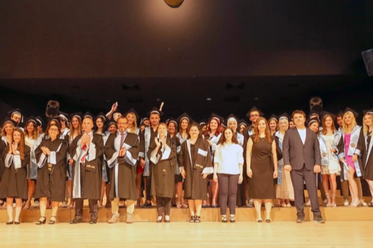 Rektör Prof. Dr. Erhan Tabakoğlu’nun bir video mesajının izlenmesinin ardından tören, mezun öğrencilere plaket ve mezuniyet belgelerinin verilmesiyle birlikte meslek andının okunması ve kep atma seremonisi ile sona erdi.
