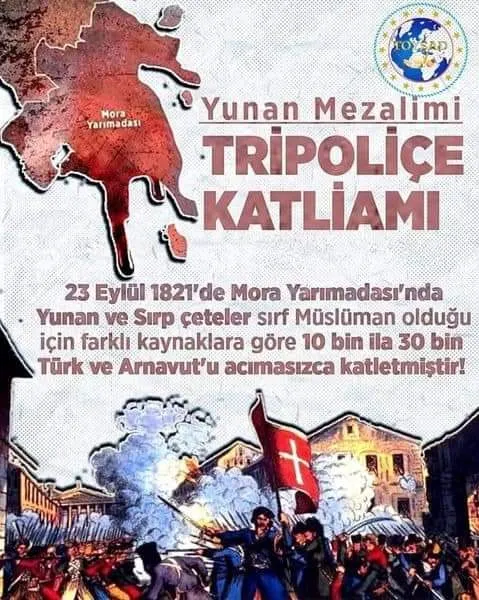 Yunan Bağımsızlık Savaşı’nda Tripoliçe kuşatması esnasında Türklerin ve Yahudilerin katledilme olaylarıdır. İngiliz asker ve tarihçi Thomas Gordon, katledilen sivillerin sayısını tahmini 8.000 olarak belirtmiştir. Ayrıca 8.000’de Osmanlı askeri öldürüldü.J. M. Wagstaff ise 10.000 – 15.000 sivilin katledildiğini yazmıştır.Yunan tarihi üzerinde uzman olan tarihçi ve yazar William St. Clair öldürülen sivillerin sayısının 10.000 üzerinde olduğunu belirtmiştir.Katledilenlerin içinde kadınların da olduğu görülmüştür.