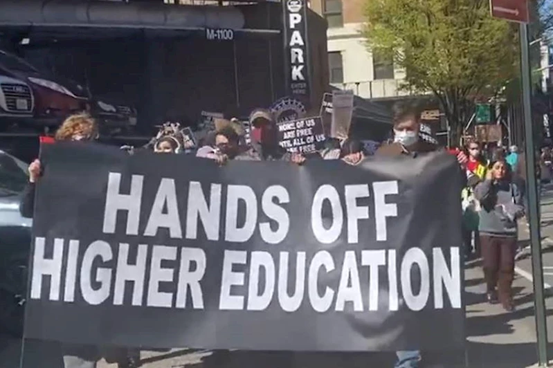 New York üniversitelerinden yüzlerce öğretim görevlisi, öğrenci, araştırmacı ve personel, ABD Başkanı Donald Trump'ın yönetimi altında yüksek öğrenimi hedef alan politikalara ve fon kesintilerine karşı Manhattan'da miting düzenledi.