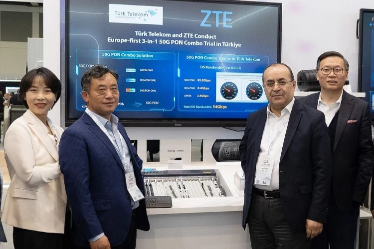 Türkiye’nin dijital dönüşümünde lokomotif rol üstlenen Türk Telekom, herkes için yüksek hızda erişim mottosuyla faaliyetlerini sürdürüyor. Yenilikçi çözümler kapsamında öncü çalışmalar yapan Türk Telekom, Avrupa’da bir ilke imza attı. Türk Telekom ile ZTE iş birliğiyle Ankara Türk Telekom İnovasyon ve Test Merkezi’nde gerçekleştirilen 3'ü 1 arada 50G PON Combo (aynı anda 2,5G/10G/50G PON) denemesi başarıyla tamamlandı. Tek bir fiber üzerinden kayda değer 50Gbps+ indirme hızlarına ulaşan deneme, Berlin’de gerçekleştirilen FTTH Konferansı’nda duyuruldu. Söz konusu teknoloji, saniyede 50 gigabit'e varan bağlantı hızıyla kullanıcılara farklı bir ağ deneyimi sunacak. 8K etkileşimli video uygulamaları, 3D bulut tasarımı, yapay zeka uygulamaları gibi süreçlerde kullanıcılara yenilikçi çözüm sağlayacak.