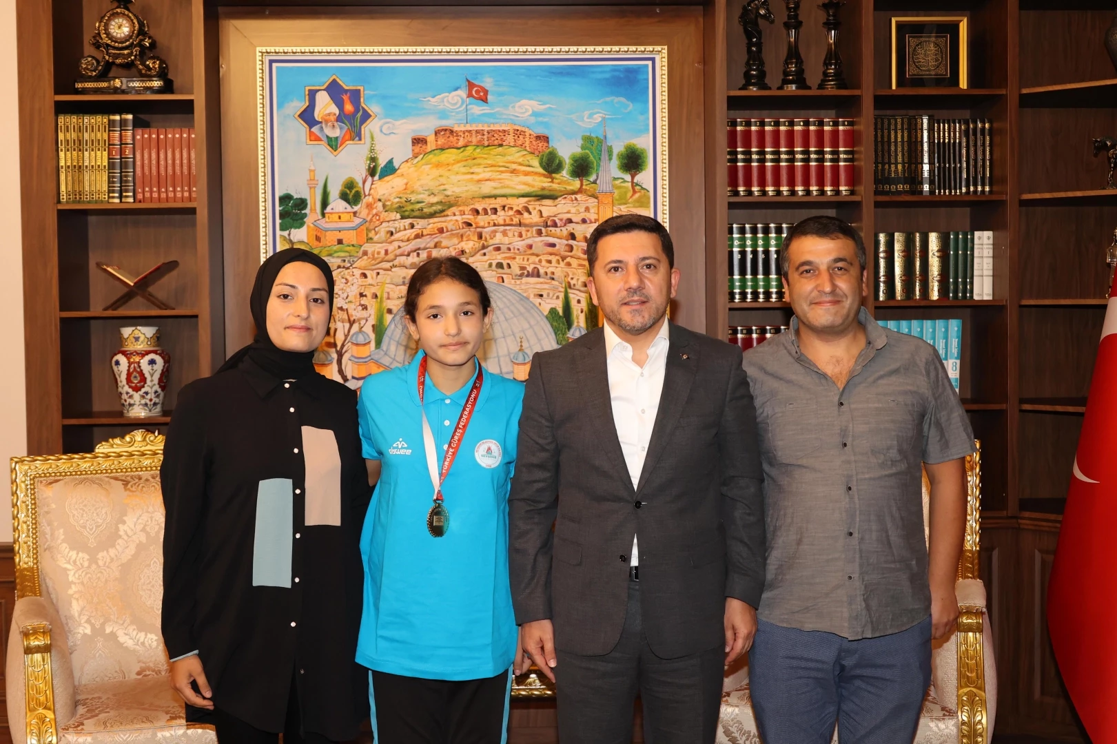 U-11 Kadınlar Güreş Türkiye Şampiyonası’nda 54 Kg’da Türkiye Şampiyonu olan Buğlem Kılıç, Nevşehir Belediye Başkanı Rasim Arı’yı ziyaret etti.