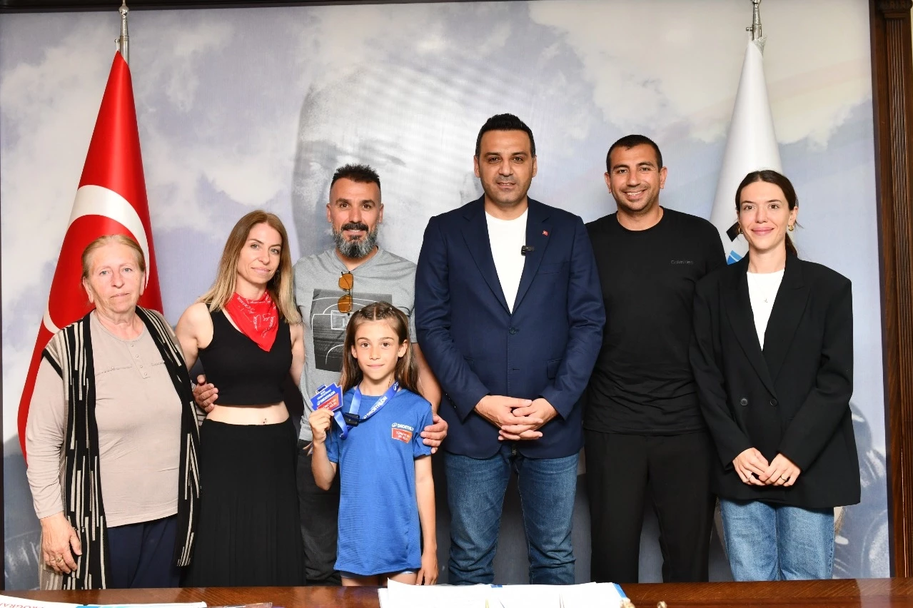 “Türkiye’nin En Hızlısı Yarışması”nda 2 milyon rakibini geride bırakarak Türkiye şampiyonu olan 10 yaşındaki Güneş Pürmüs, Çiğli Belediye Başkanı Onur Emrah Yıldız ile bir araya geldi.
