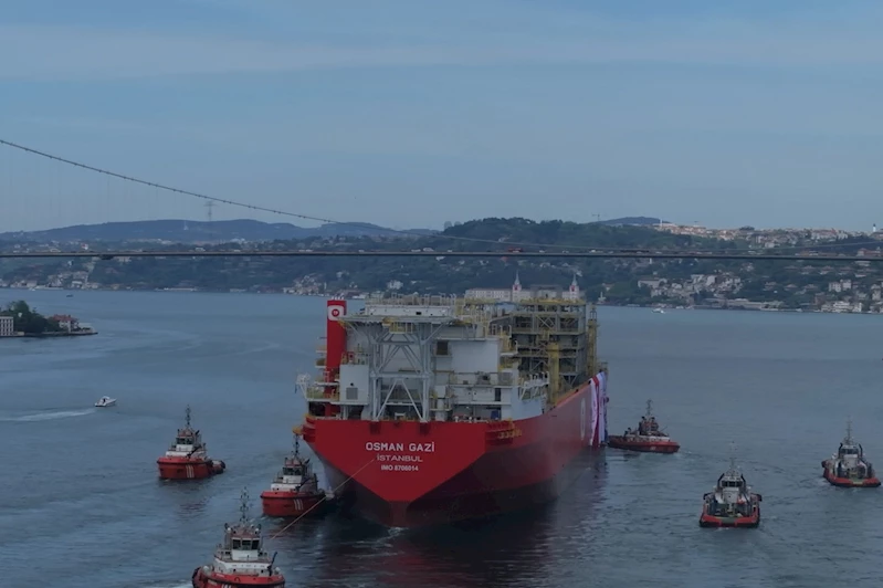 Sakarya Gaz Sahası'nda doğal gaz üretimini 2 katına çıkaracak olan Osman Gazi yüzer doğalgaz üretim platformu, Ahırkapı Demir Sahası'ndan hareket etti.
