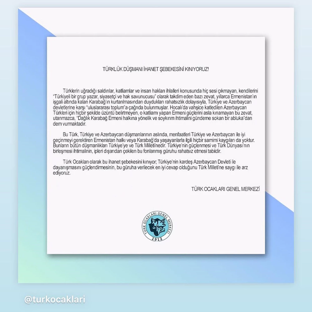 Türklük Düşmanı ihanet şebekesini kınıyoruz Türk Ocakları